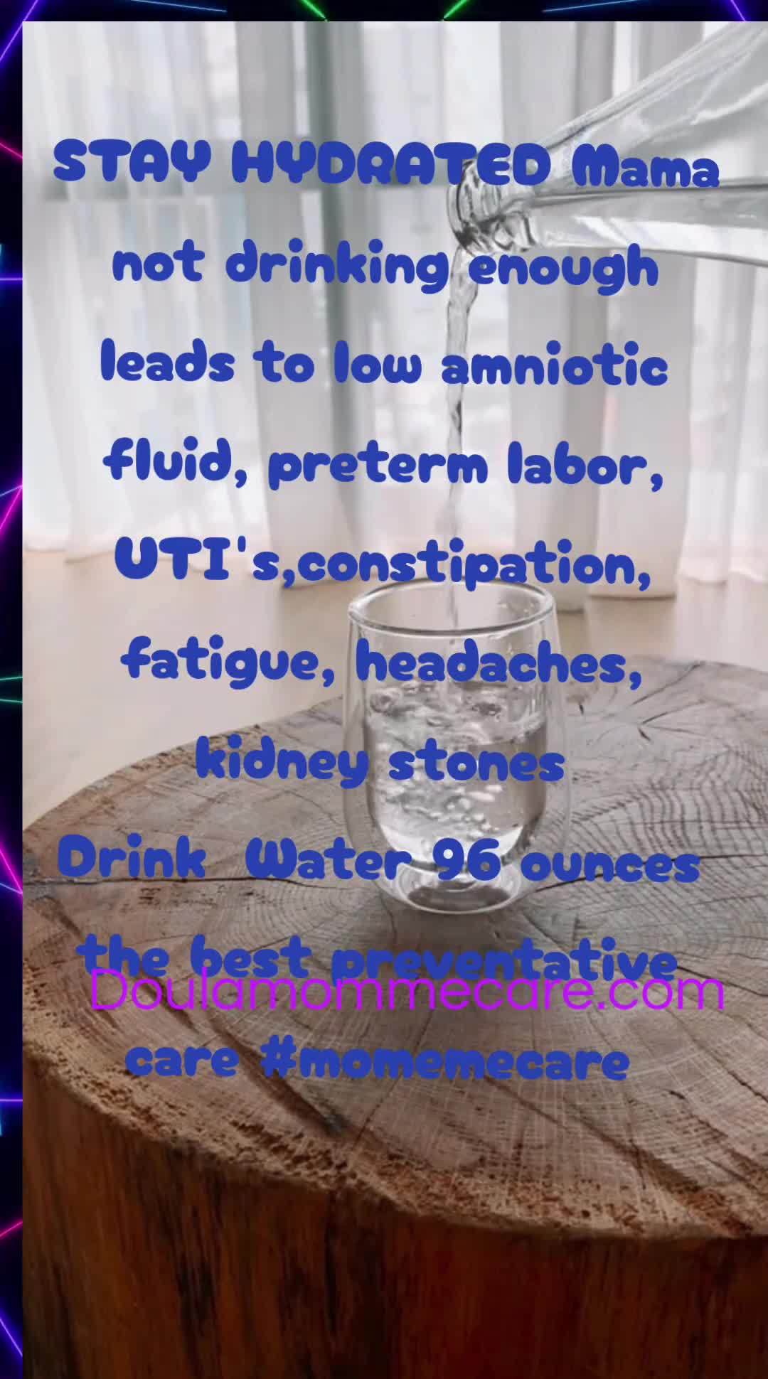 Empower your pregnancy with knowledge. Understand that water is the molecule of all life. Life cannot exist without it. So, mama please drink your water!